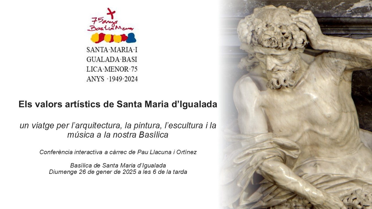 El proper diumenge 26 de gener a les 6 de la tarda es va cel·lebrar la darrera conferència del cicle commemoratiu pels 75 anys de la concessió de Basílica Menor a la nostra església parroquial. De la mà de Pau Llacuna i Ortínez va esdevenir un viatge emotiu i extens pels valors i elements artístics de Santa Maria.