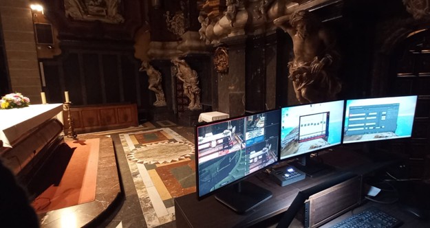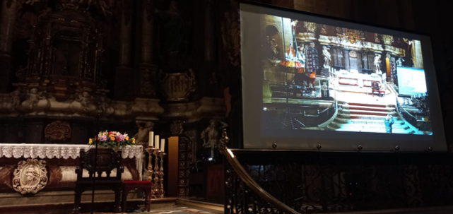 També s’ha equipat amb una pantalla de projecció de gran format i un projector fix d’alta lluminositat que pot executar presentacions i audiovisuals i reproduir en directe els continguts de les càmeres de la nau, cor i espais, així com qualsevol altre contingut digitalitzat.